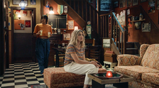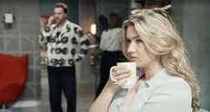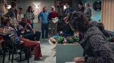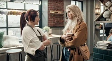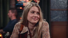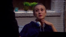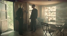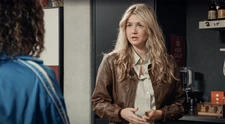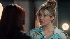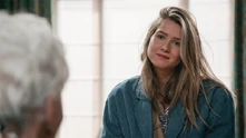 June wil met Louise praten in de Jan en Alleman Louise: Wat doet gij hier? June: Ik hoorde dat jij vandaag hier zou zijn. En ik wou je nog eens zien. Louise: Ik u niet. Dus ge kunt beter vertrekken. |