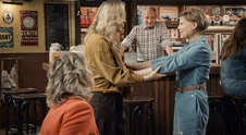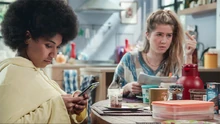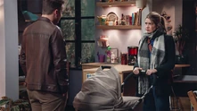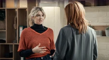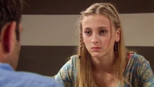 Een klap in het gezicht Louise ontdekt dat Bart op de zetel slaapt. Hij beseft dat de kinderen recht hebben op de waarheid en samen met Trudy besluiten ze om hen de waarheid te vertellen over hun relatieproblemen. Louise vertelt alles aan June en die merkt dat hierdoor de band tussen Trudy en Peter alsmaar sterker wordt. Louise komt hard uit de hoek tegen haar moeder. Trudy verliest haar geduld en geeft Louise een klap in het gezicht. Terwijl Peter zijn dochter probeert te kalmeren, gooit June nog wat extra olie op het vuur. Trudy heeft spijt van de aanvaring met Louise. De tiener slaat elke toenaderingspoging af. Peter probeert zijn dochter te kalmeren maar dankzij June heeft dit geen effect. |